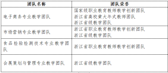 团队带头人张红为二级教授,任全国电子商务职业教育教学委员会委员。团队依托专业先后入选省重点、省特色、“十二五”“十三五”优势专业、国家优质校骨干专业,综合实力位居全国前列。近年来,团队荣获职业教育国家级教学成果奖一等奖1项、二等奖1项,省部级教学成果奖5项;主持制定国家级标准3项,建设国家教学资源库1项、子库2项,建成国家级课程3 门及省在线开放课程3门,入选国家级课程思政示范课1门、“十三五”职业教育国家规划教材8本;主持省部级以上项目10个,发表一级/SCI/EI/核心论文40余篇。团队先后入选首批国家级职业教育教学创新团队、国家级课程思政示范课程教学团队,所依托的电子商务专业为国家“双高计划”高水平专业群、国家优质校骨干专业、浙江省优势专业与特色专业。团队基于国家乡村振兴战略及浙江数字经济产业升级发展,建立农村电商多元化服务体系,参与建设县域农产品电商化应用技术省级协同创新中心,服务农产品电商,为企业创造经济效益超过1亿元,社会效益显著。