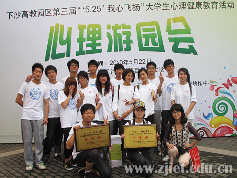 此次心理游园会包括心理健康短信比赛、心理健康知识比赛、心理趣味运动会三个项目。我院国际贸易086班李璐璐同学、金融保险091班倪雪娟同学获得了最佳心理短信奖,计算机091班姚丽黎、食品营养091班沈荧同学获得了优秀心理短信奖。由李璐璐、胡珊、李斐斐同学组成的代表队参加了22日上午的心理知识竞赛,获得了优秀奖。在下午的心理趣味运动会比赛中,由15人组成的我院代表队经过紧张激烈的角逐,以总耗时最低的好成绩,摘取了比赛一等奖。同学们在考验团队配合的各个项目中团结协作、配合默契、表现活跃、气势逼人,给在场的其他高校老师留下了深刻的印象。