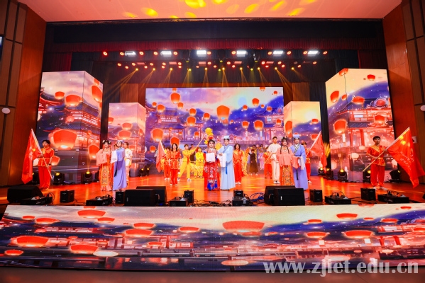 晚会分为“华章日新”“青衿之志”“岁月如歌”三个篇章,乐队暖场四曲连唱带动现场氛围,贺岁短片《与经贸同行》开启序幕,古典舞《寻茶》以翩跹舞姿演绎茶艺之美。由中层教师代表和学生带来的朗诵节目《灯塔》,以师生对话的形式,展现了教师的鲜明底色和我校师生昂扬奋进的精神风貌。