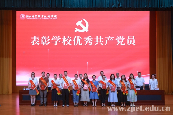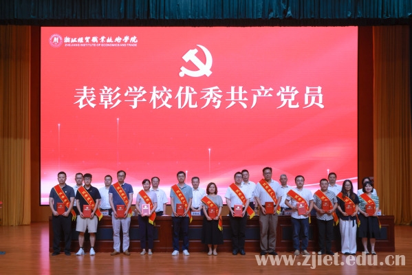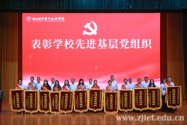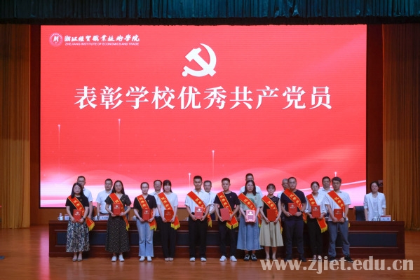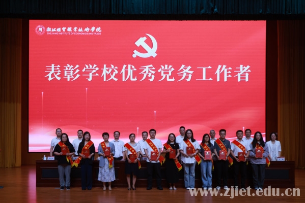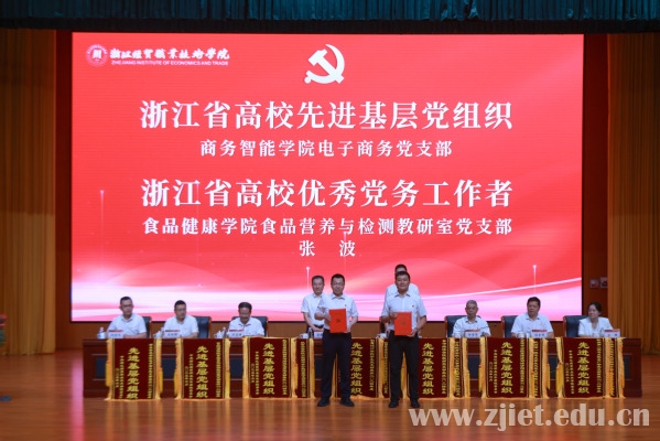 党委委员、副校长何学军宣读了表彰文件。会上表彰了浙江省高校先进基层党组织、优秀党务工作者,学校先进基层党组织、优秀共产党员、优秀党务工作者。先进基层党组织代表、数智财金学院大数据与会计教研室党支部书记解媚霞,优秀共产党员代表、合作经济学院教师党支部王文钰,浙江省高校优秀党务工作者、食品健康学院食品营养与检测教研室党支部张波作了发言。